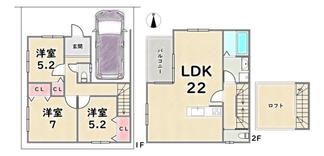 《建築プラン例:2号地》建延92.74平米